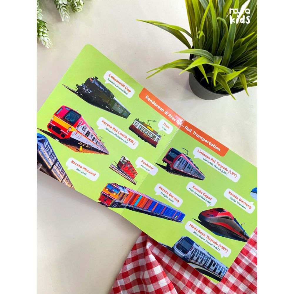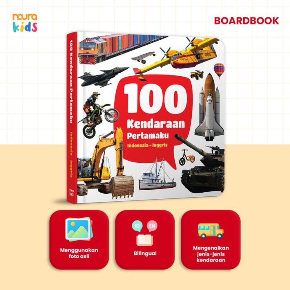 Dengan foto-foto asli yang menarik dan penuh warna, disertai kosakata bahasa Indonesia dan Inggris,100 Kendaraan Pertamaku mampu menstimulasi kecerdasan linguistik dan visual-spasial buah hati Anda.