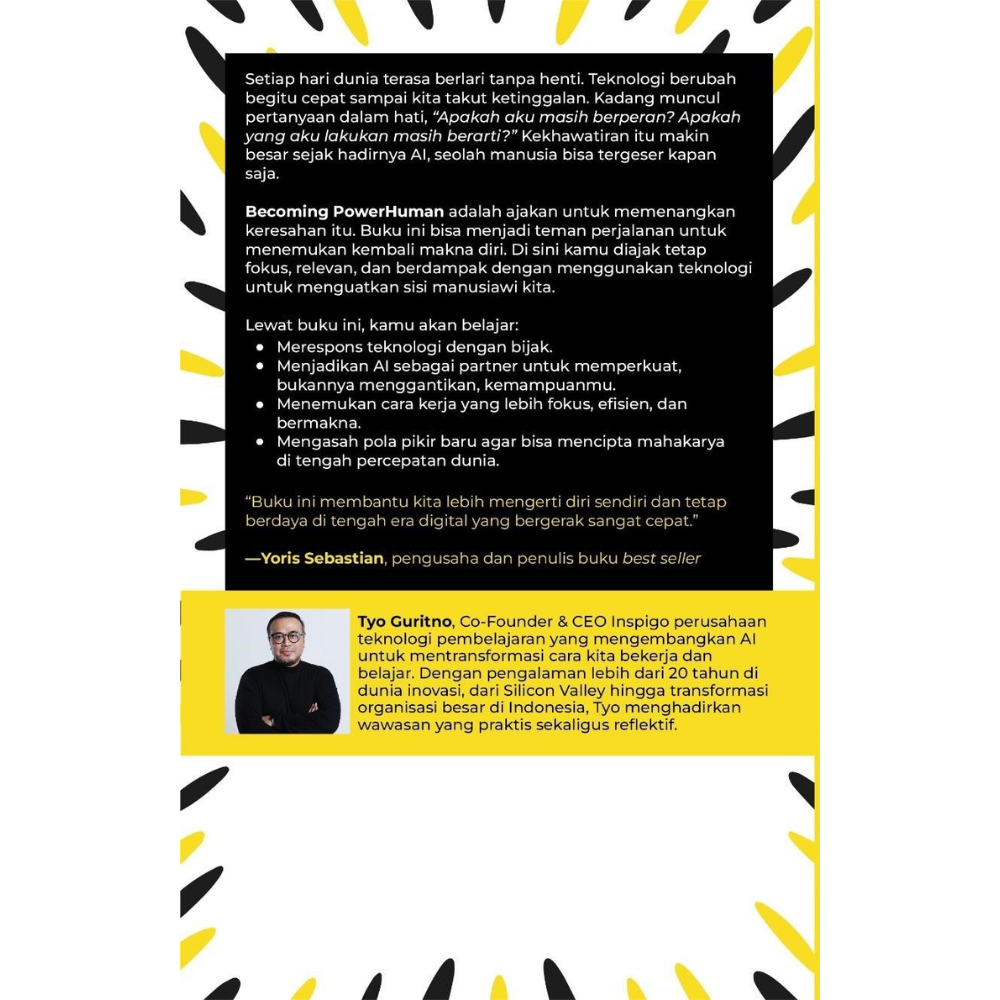 Dari refleksi inilah lahir konsep Becoming PowerHuman. Buku ini tidak menawarkan resep instan atau klaim jawaban mutlak, melainkan ajakan untuk bertanya ulang: apa sebenarnya esensi menjadi manusia di tengah laju teknologi?
