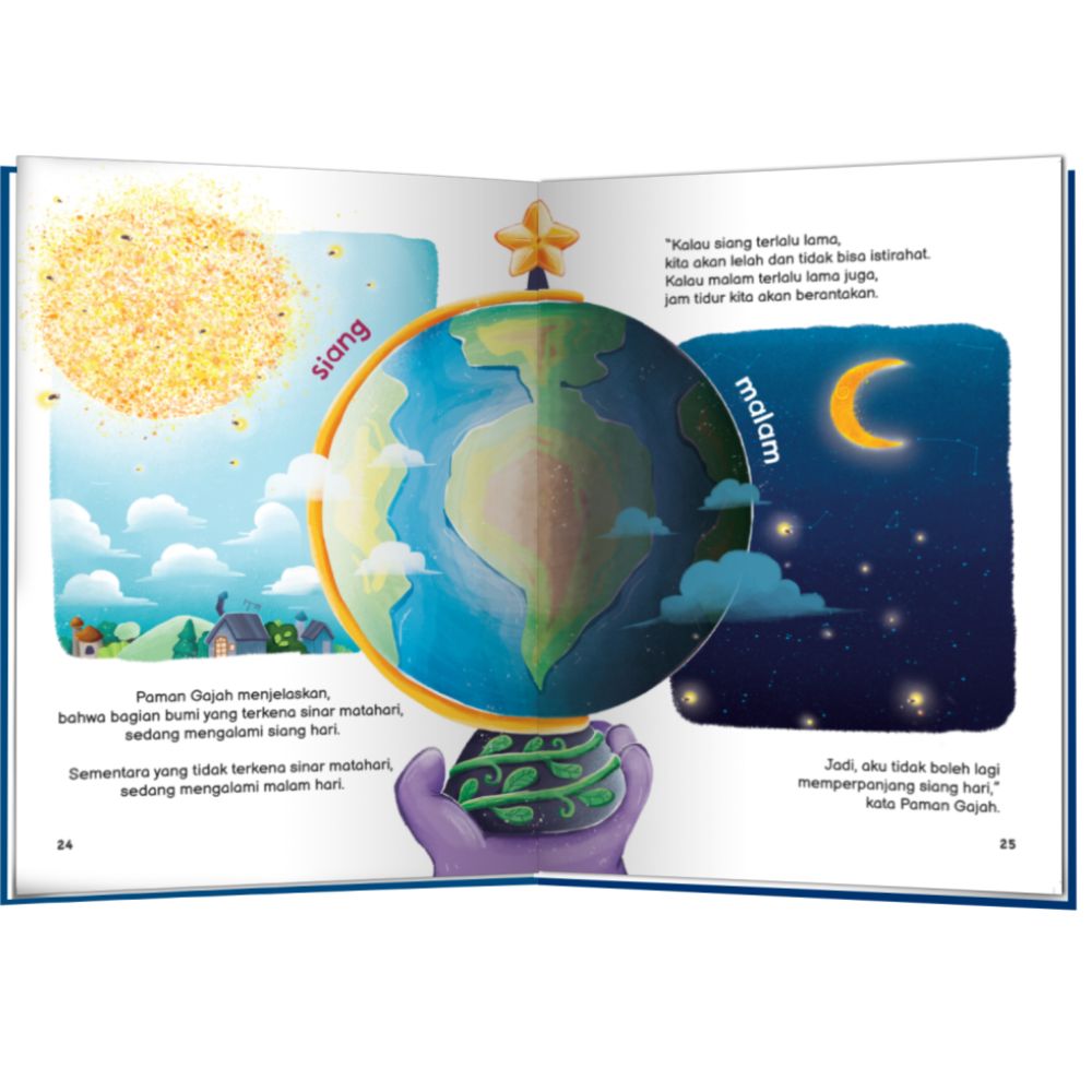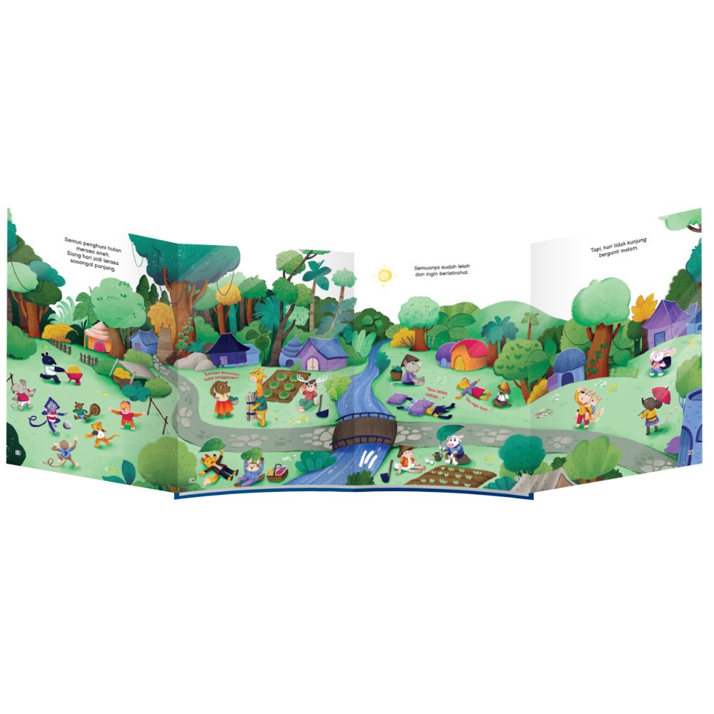 Mereka pun meminta bantuan Paman Gajah untuk memperpanjang siang.