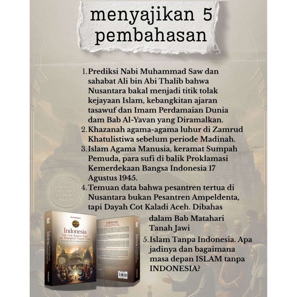 Buku ini mengungkap rahasia tersembunyi Nusantara pra-Islam: jejak para Nabi yang telah menabur benih keagungan spiritual di tanah ini, jauh sebelum Makkah dan Madinah menjadi pusat peradaban Islam awal. Melalui nubuat kitab suci dan manuskrip kuno Nusantara, terungkap bagaimana Indonesia bukan hanya saksi sejarah, tapi titik tolak kejayaan Islam dunia. Menjemput masa depan Islam dari Indonesia bukan lagi mimpi, melainkan prediksi yang terbukti—di mana kebangkitan tasawuf dunia dimulai dari sini, membawa cahaya baru bagi umat manusia. Siapkah kita menyambut era emas ini?
