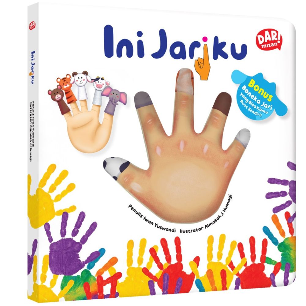 Ayo, mengenal jari-jarimu dengan cara yang seru! Buku ini berlubang membentuk jari tangan, loh! Kamu juga bisa membuat boneka hewan, lalu memasukkannya ke dalam lima jarimu. Seru, kan? Yuk, main bersama!