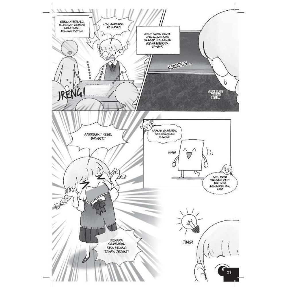 Amily geram sekali. Gambar-gambarnya dicuri entah oleh siapa. Tidak ada satu orang teman pun yang tahu pelakunya. Pikiran Amily buntu. Amily memang terkenal jago menggambar. Karya-karyanya selalu mengundang pujian Miss Vera, guru seni lukis, dan teman-teman. Mungkinkah pencuri gambar Amily adalah pengagum rahasianya? Amily bertekad, gambar-gambar yang hilang itu harus ditemukan! Kalau perlu, dia akan berpura-pura menjadi monster seram untuk menghadapi si pencuri! Amily mulai menyusun rencana untuk menjebak pencurinya. Menurut kamu, siapa sebenarnya yang mengambil gambar-gambar Amily? Kenapa orang itu melakukannya? Jawabannya ada di dalam buku ini.