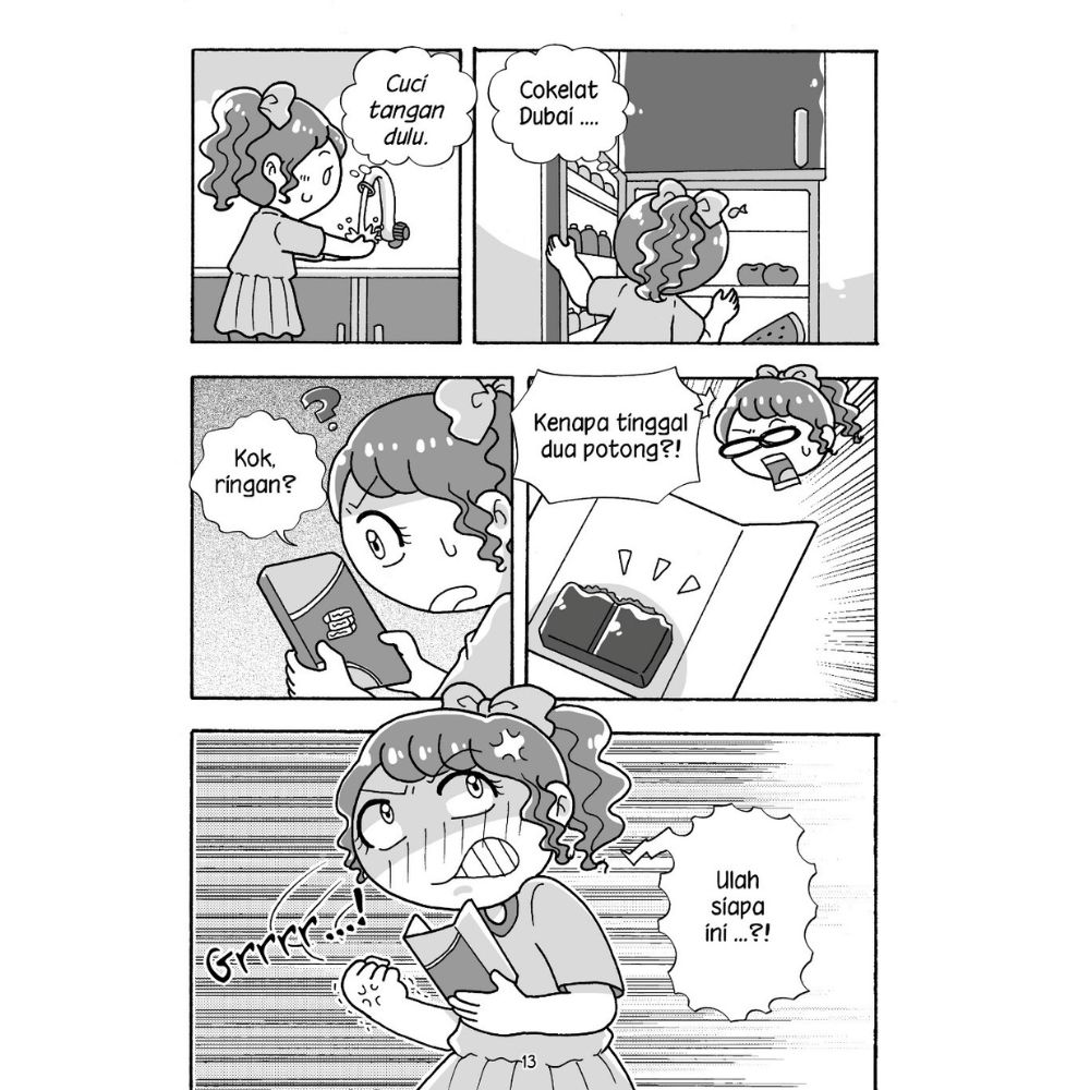 Loly dan Adik akhirnya mencicipi cokelat Dubai yang terkenal itu. Aroma pistasio dan cokelatnya harum sekali. Mereka sampai harus menahan diri supaya tidak langsung menghabiskannya karena harganya mahal. Namun keesokan harinya, Loly kaget melihat cokelat Dubainya hanya tersisa dua potong. Bukannya kemarin mereka cuma makan sedikit? Loly langsung curiga pada Adik. Benarkah ini semua ulah Adik?