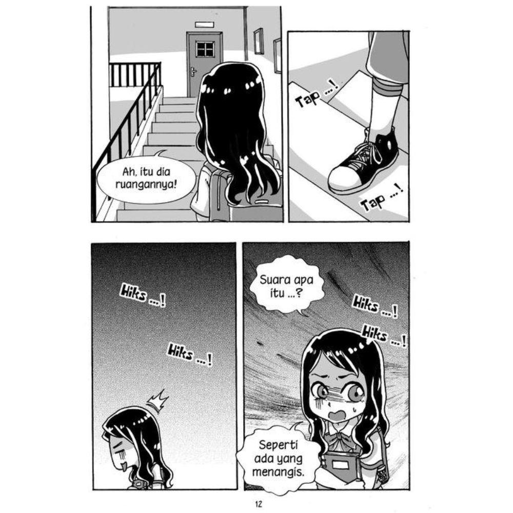 Sebagai ketua murid, Jeni diberi tugas oleh Pak Guru untuk mengantarkan buku ke ruang audio visual. Saat akan menuju ke sana, tiba-tiba saja lampu di lorong tangga sekolah menjadi redup. Tidak hanya itu, mulai terdengar suara tangisan yang entah dari mana asalnya. Semakin lama suara tangisannya semakin kencang. Jeni panik. Haruskah ia mengeceknya atau mengabaikannya?