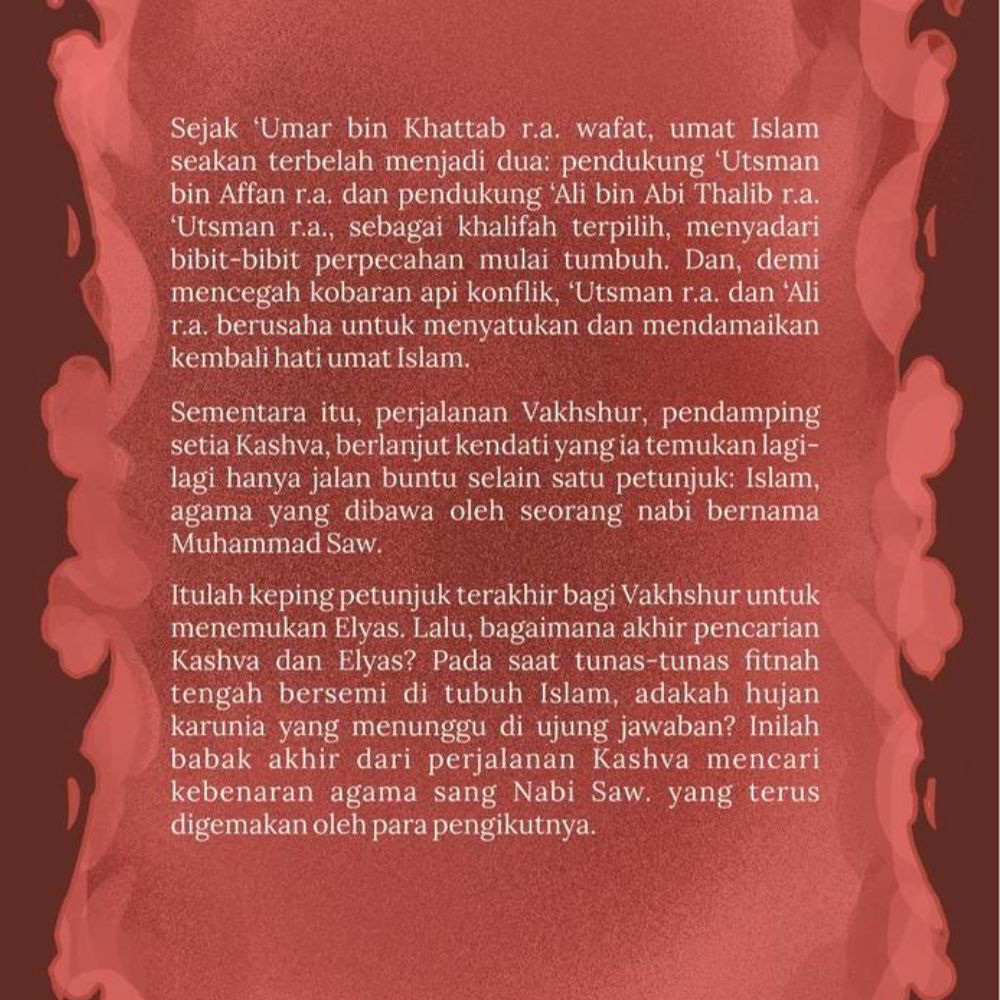 Islam, agama yang dibawa oleh seorang nabi bernama Muhammad. Itulah keping petunjuk terakhir bagi Vakhshur untuk menemukan Elyas. Lalu, bagaimana akhir pencarian Kashva dan Elyas? Di saat tunas-tunas fitnah tengah bersemi di tubuh Islam, adakah hujan karunia yang menunggu di ujung jawaban? Inilah babak akhir dari perjalanan Kashva mencari kebenaran agama sang Nabi yang terus digemakan oleh para pengikutnya.