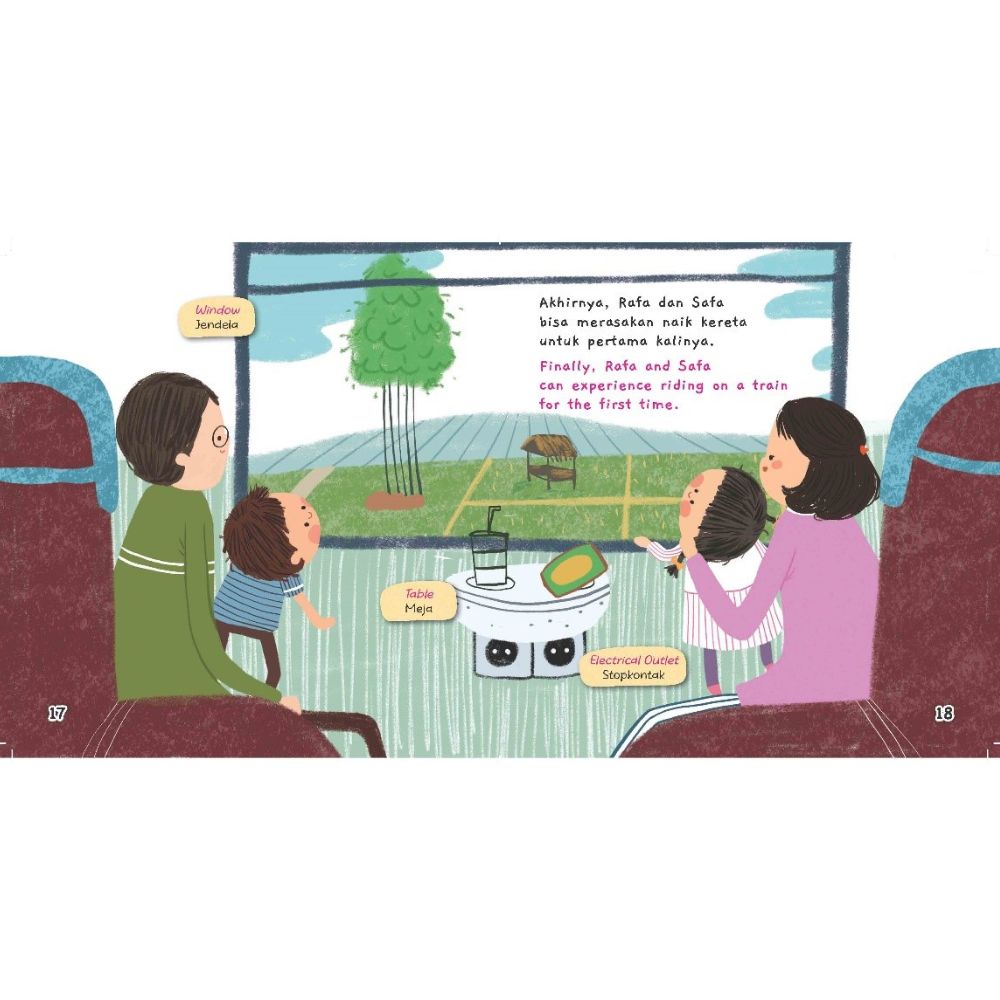 Rafa dan Safa naik kereta api bersama Ayah dan Bunda.