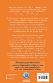 Penulis buku terlaris dan pembicara TED Talks yang terkenal, Dan Ariely, mengungkapkan wawasan baru yang menarik tentang motivasi — betapa upaya ini jauh lebih kompleks daripada yang pernah kita bayangkan. Setiap hari kita bekerja keras untuk memotivasi diri kita sendiri, orang-orang yang tinggal bersama kita, maupun orang-orang yang bekerja bersama kita. Dengan semua upaya itu, apa yang sesungguhnya melandasi kita untuk berusaha mencapai sesuatu yang sulit dan menantang, meski prosesnya cukup menyakitkan? Apa yang sesungguhnya membuat kita rela menderita demi mencapai keinginan kita? Dalam buku ini, Ariely menyajikan serangkaian riset eksperimentalnya. Ia mendatangi kantor Intel dan melakukan tes tentang hubungan peningkatan kinerja dan bonus, mengunjungi pasien dengan luka bakar akut yang tengah berjuang untuk sembuh, hingga menelisik dorongan sederhana mengapa orang-orang rela bersusah payah dan menghabiskan waktu merakit produk IKEA dengan petunjuknya yang rumit.Semua ini bertujuan untuk menemukan akar motivasi — cara kerjanya dan bagaimana kita dapat menggunakan pengetahuan ini untuk memutuskan pilihan-pilihan penting dalam kehidupan kita sendiri.