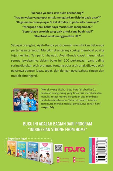 Sebagai orangtua, Ayah-Bunda pasti pernah memikirkan beberapa pertanyaan tersebut. Mungkin di antaranya cukup membuat pusing tujuh keliling. Tak perlu khawatir, Ayah-Bunda dapat menemukan semua jawabannya dalam buku ini. 100 pertanyaan yang paling sering diajukan oleh orangtua tentang pola asuh anak dijawab oleh pakarnya dengan lugas, tepat, dan dengan gaya bahasa ringan dan mudah dimengerti.