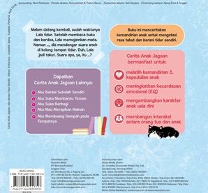 Malam datang kembali, sudah waktunya Lala tidur. Setelah membaca buku dan berdoa, Lala memejamkan mata. Tapi ... dia mendengar suara aneh di kolong tempat tidur. Duh, Lala jadi takut. Suara apa ya itu ....