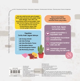 Lala suka sekali bermain game di gadget. Meski sudah ada jadwal main gadget, tapi selalu dilanggar. Diam-diam, Lala bersembunyi untuk bermain gadget. Aduh, ayah dan ibu bingung sekali mencarinya. Ayo, kita bantu mencari Lala dan memberitahunya supaya tidak boleh bermain gadget terlalu lama.