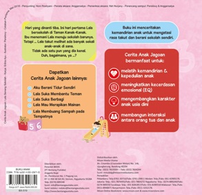 Sebuah boardbook dengan ilustrasi yang menarik. Mengajarkan keberanian anak lewat cerita sederhana yang biasa dialami anak-anak. Melalui pendekatan karakter tokoh Lala-Raka.