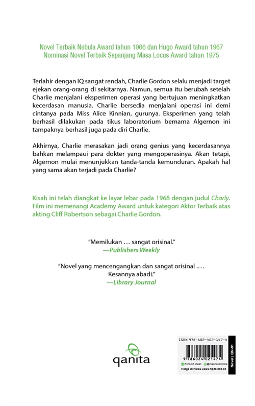 Terlahir dengan IQ sangat rendah, Charlie Gordon selalu menjadi target ejekan orang-orang di sekitarnya. Namun, semua itu berubah setelah Charlie menjalani eksperimen operasi yang bertujuan meningkatkan kecerdasan manusia. Charlie bersedia menjalani operasi ini demi cintanya pada Miss Alice Kinnian, gurunya. Eksperimen yang telah berhasil dilakukan pada tikus laboratorium bernama Algernon ini tampaknya berhasil juga pada diri Charlie.