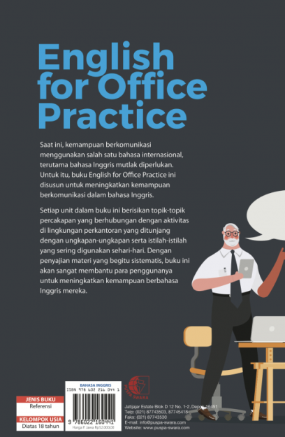 Saat ini, kemampuan berkomunikasi mengggunakan salah satu bahasa internasional, terutama bahasa inggris mutlak diperlukan. Untuk itu, buku English for Office Practice ini disusun untuk meningkatkan kemampuan berkomunikasi dalam bahasa inggris