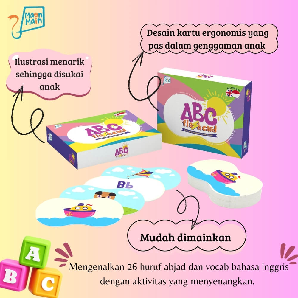 Yuk, mengenal huruf sekaligus belajar vocab bahasa inggris! Dengan design yang lucu, anak-anak diajak mengenal huruf dengan cara yang menyenangkan! Fokus Produk: ? Sebagai media belajar anak yang FUN. ? Mengenal huruf pada anak. ? Belajar kosakata dalam Bahasa Inggris. Fitur: ? Mudah dimainkan ? Print depan belakang ? Bentuk kartu yang unik ? Ilustrasi menarik ? 26 kartu kosakata disesuaikan dengan huruf