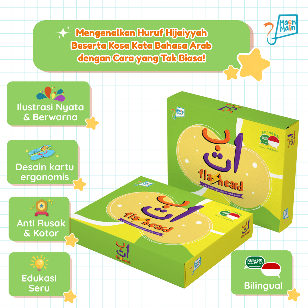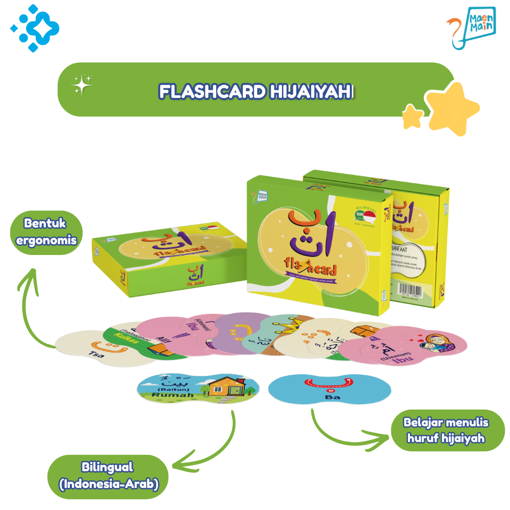 Flashcard Hijaiyah adalah media permainan sekaligus pembelajaran untuk mengenalkan huruf hijaiyah sekaligus kosakata Bahasa Arab pada anak dengan cara lebih mudah. Anak bisa sekalian belajar kosa-kata bahasa arab juga loh.