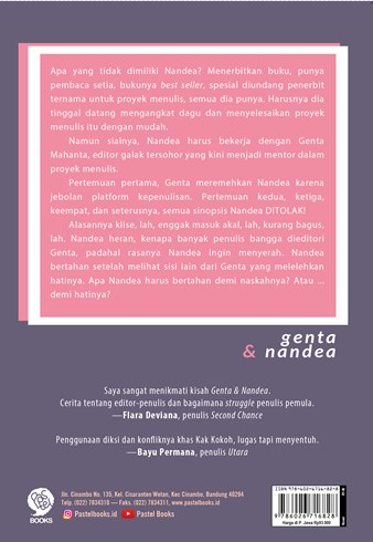 Alasannya klise, lah, enggak masuk akal lah, kurang bagus, lah. Nandea heran, kenapa banyak penulis bangga dieditori Genta, padahal rasanya Nandea ingin menyerah. Nandea bertahan setelah melihat sisi lain dari Genta yang melelehkan hatinya. Apa Nandea harus bertahan demi naskahnya? Atau ... demi hatinya?
