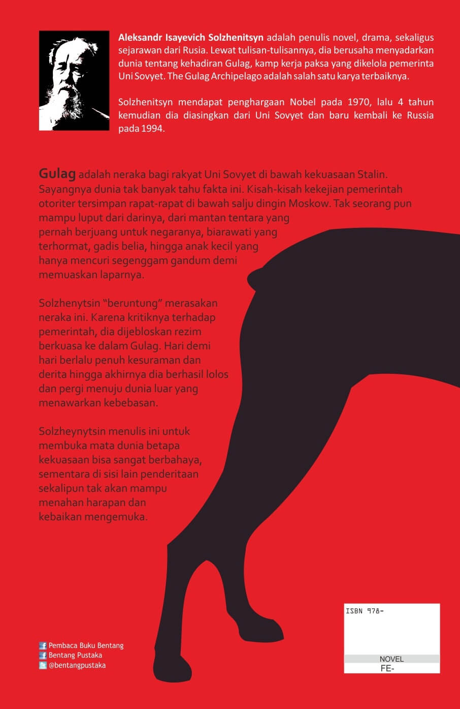 Gulag adalah neraka bagi rakyat Uni Sovyet di bawah kekuasaan Stalin yang tersembunyi dari mata dunia. Tak seorang pun mampu luput darinya, termasuk pemuka agama, wanita, bahkan anak-anak. Dengan gaya bertutur yang tangkas dan lincah, kadang berbau satiris, Solzhenitsyn menuturkan operasi penangkapan, kamp kerja paksa, suasana batin dan derita fisik para tahanan, dan orang-orang yang secara mengejutkan memiliki keteguhan moral menghadapi penindasan dan penyiksaan, serta kehidupan di pengasingan. Solzhenitsyn lebih menekankan aspek moral dari persoalan yang diangkatnya ini. Pengungkapan kekejaman dan keculasan yang dilakukan sebuah rezim penguasa tidak cukup hanya dipandang sebagai masalah politik, tetapi juga merupakan masalah moral yang mengantarkan pembaca pada pertanyaan-pertanyaan mendasar tentang sifat manusia sendiri: apakah manusia pada dasarnya memang jahat? Ataukah baik? Dan mungkin yang paling penting: mengapa manusia sering kali tidak mampu menentang kejahatan yang terjad di depan matanya sendiri? Melalui versi ringkas The Gulag Archipelago ini, Solzhenitsyn sekali lagi membuktikan bahwa kekuasaan pemerintah memang mampu melakukan berbagai bentuk kekejaman kepada manusia, fisik maupun mental, tapi tidak akan pernah bisa benar-benar memadamkan semangat manusia.