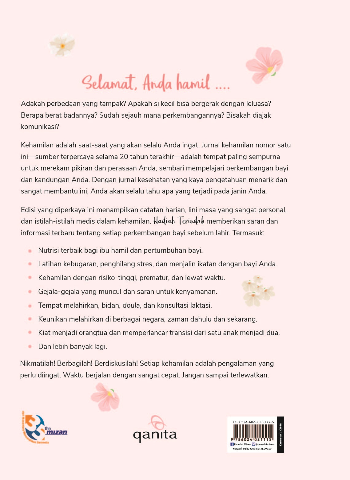 Selamat, Anda hamil .... Adakah perbedaan yang tampak? Apakah si kecil bisa bergerak dengan leluasa? Berapa berat badannya? Sudah sejauh mana perkembangannya? Bisakah diajak komunikasi? Kehamilan adalah saat-saat yang akan selalu Anda ingat. Jurnal kehamilan nomor satu ini-sumber terpercaya selama 20 tahun terakhir-adalah tempat paling sempurna untuk merekam pikiran dan perasaan Anda, sembari mempelajari perkembangan bayi dan kandungan Anda. Dengan jurnal kesehatan yang kaya pengetahuan menarik dan sangat membantu ini, Anda akan selalu tahu apa yang terjadi pada janin Anda. Edisi yang diperkaya ini menampilkan catatan harian, lini masa yang sangat personal, dan istilah-istilah medis dalam kehamilan. Hadiah Terindah memberikan saran dan informasi terbaru tentang setiap perkembangan bayi sebelum lahir. Termasuk: ^ Nutrisi terbaik bagi ibu hamil dan pertumbuhan bayi. ^ Latihan kebugaran, penghilang stres, dan menjalin ikatan dengan bayi Anda. ^ Kehamilan dengan risiko-tinggi, prematur, dan lewat waktu. ^ Gejala-gejala yang muncul dan saran untuk kenyamanan. ^ Tempat melahirkan, bidan, doula, dan konsultasi laktasi. ^ Keunikan melahirkan di berbagai negara, zaman dahulu dan sekarang. ^ Kiat menjadi orangtua dan memperlancar transisi dari satu anak menjadi dua. ^ Dan lebih banyak lagi. Nikmatilah! Berbagilah! Berdiskusilah! Setiap kehamilan adalah pengalaman yang perlu diingat. Waktu berjalan dengan sangat cepat. Jangan sampai terlewatkan.