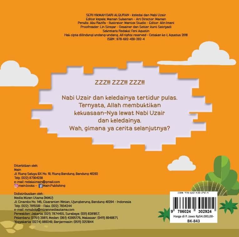 Buku ini menceritakan Keledai Nabi Uzair. Siang yang terik, Nabi Uzair dan keledainya beristirahat di dekat pemakaman. Nabi Uzair melihat sekeliling pemakaman sambil memikirkan tentang hidup dan mati. Tak lama, Nabi Uzair dan keledainya tertidur pulas. Ternyata, Allah membuktikan kekuasaan-Nya lewat Nabi Uzair dan keledainya. Wah, apa, ya? Yuk, baca saja!