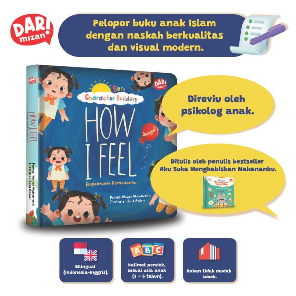 Buku How I Feel, Bagaimana Perasaanku, merupakan buku yang dirancang untuk membantu anak-anak memahami dan mengidentifikasi berbagai macam perasaan yang mereka alami. Melalui gambar dan kata-kata yang sederhana, buku ini menyampaikan emosi-emosi seperti kebahagiaan, kesedihan, kemarahan, rasa takut, dan lainnya. Buku ini juga menggambarkan bagaimana perasaan tersebut bisa terjadi dalam berbagai situasi yang mudah dipahami oleh anak-anak.