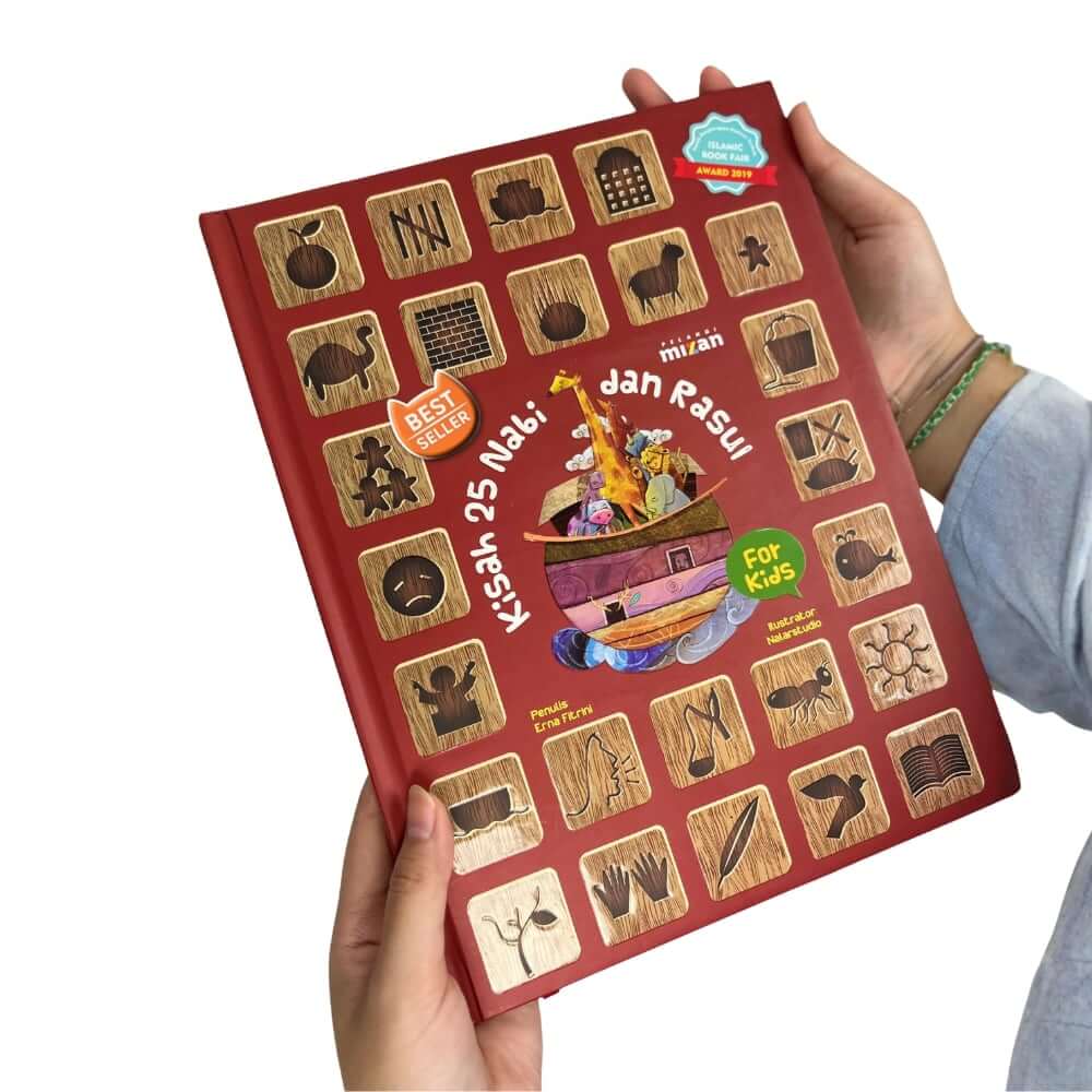 Selanjutnya, Teman-Teman bisa mengingat nama-nama nabi dengan mengingat gambar-gambar di sampul depan. Misalnya, gambar buah berarti Nabi Adam, gambar unta berarti Nabi Shaleh, dan begitu seterusnya.