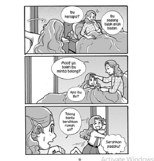 Saat Killa pulang sekolah, tumben sekali ibu tidak menyambutnya. Rupanya, ibu sedang istirahat karena tidak enak badan. Ibu pun meminta bantuan Killa untuk membereskan rumah. Wah, ternyata banyak juga pekerjaan rumah yang dikerjakan Ibu. Bisa tidak ya, Killa meringankan pekerjaan ibu?