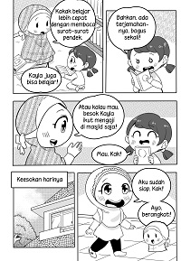 Kayla ingin sekali pandai membaca Al-Quran seperti Kak Nayla. Kata Kak Nayla, Kayla bisa memulainya dengan belajar membaca surah-surah pendek dan ikut mengaji di masjid. Dan benar saja, ternyata belajar mengaji di masjid itu menyenangkan! Nayla jadi makin semangat untuk jadi generasi Al-Quran!