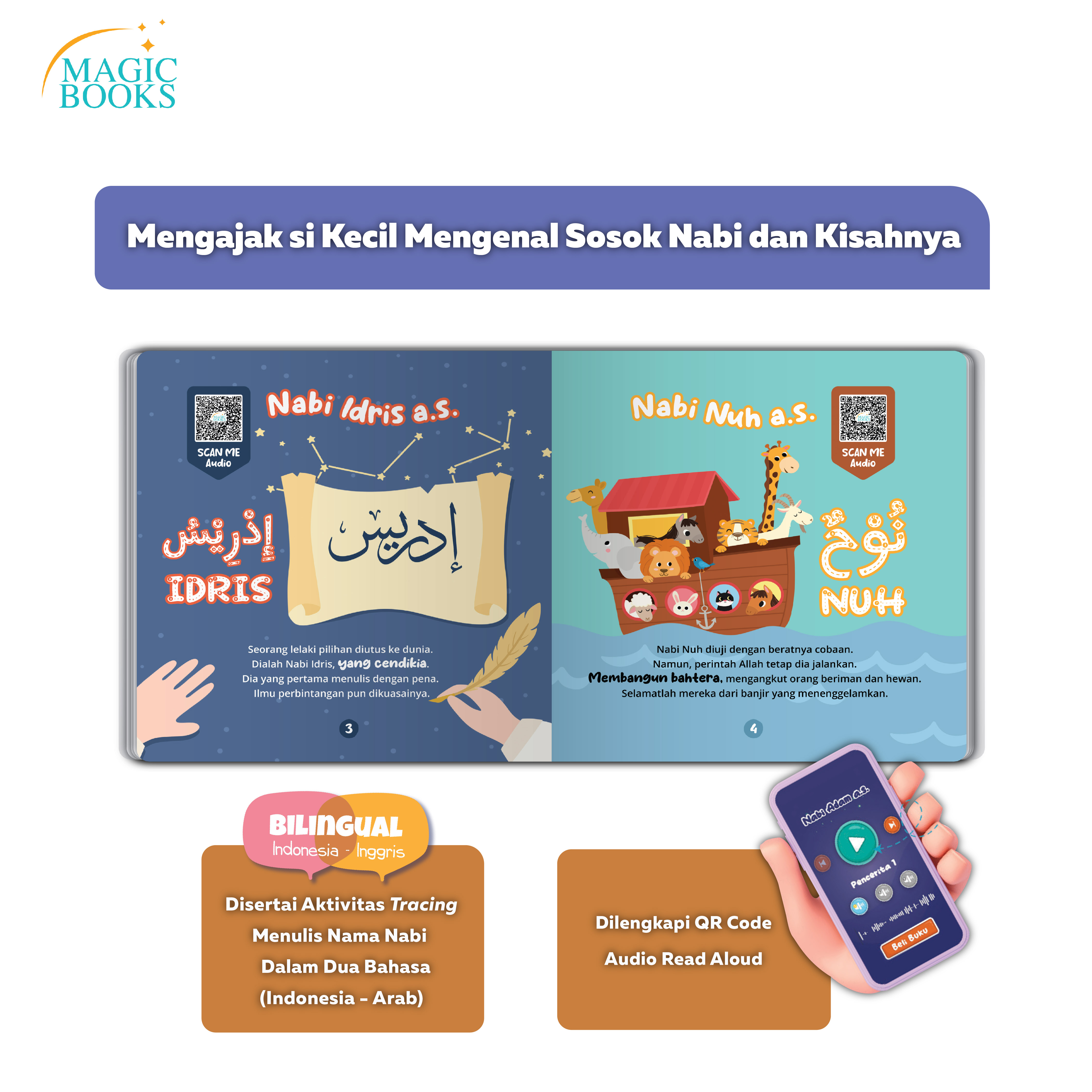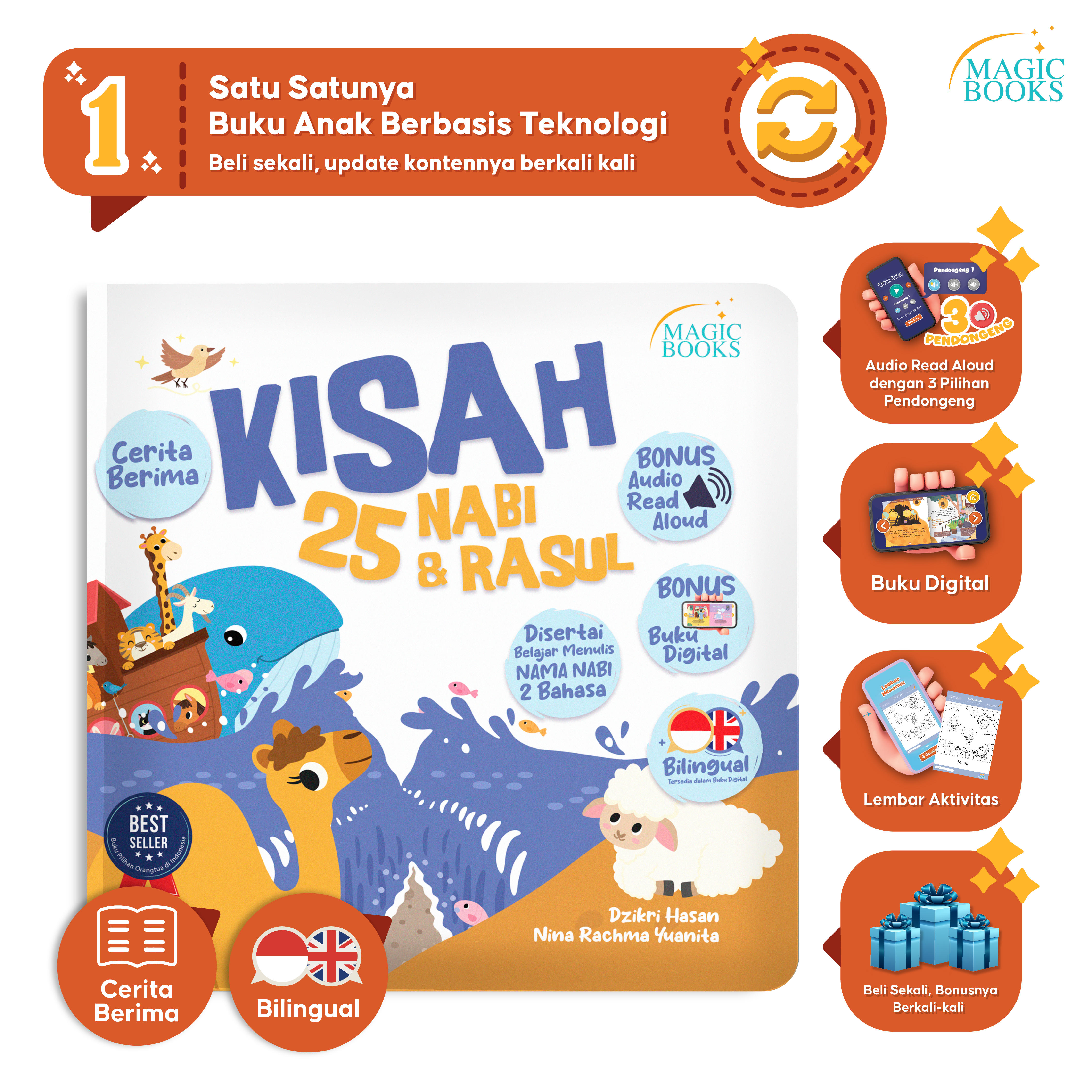 Dalam membantu anak-anak mengenal dan menghafal nama-nama nabi ini, buku Kisah 25 & Rasul ini dilengkapi fitur pembelajaran menulis nama-nama nabi dalam dua bahasa (Indonesia - Arab).