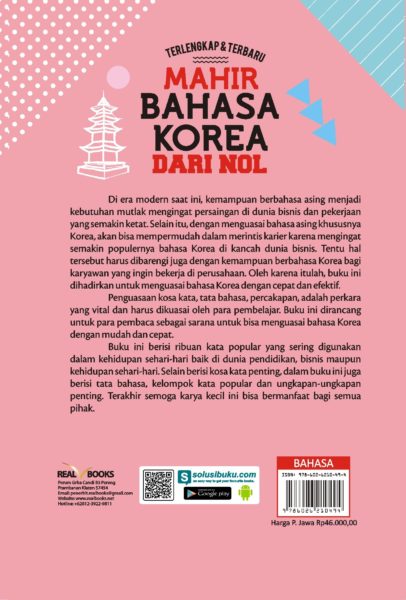Di era modern saat ini, kemampuan berbahasa asing menjadi kebutuhan mutlak mengingat persaingan di dunia bisnis dan pekerjaan yang semakin ketat. Selain itu, dengan menguasai bahasa asing khususnya Korea, akan bisa mempermudah dalam merintis karier. Oleh karena itulah, buku ini dihadirkan untuk menguasai bahasa Korea dengan cepat dan efektif. Penguasaan kosa kata, tata bahasa, percakapan, adalah perkara yang vital dan harus dikuasai oleh para pembelajar. Buku ini dirancang untuk para pembaca sebagai sarana untuk bisa menguasai bahasa Korea dengan mudah dan cepat.