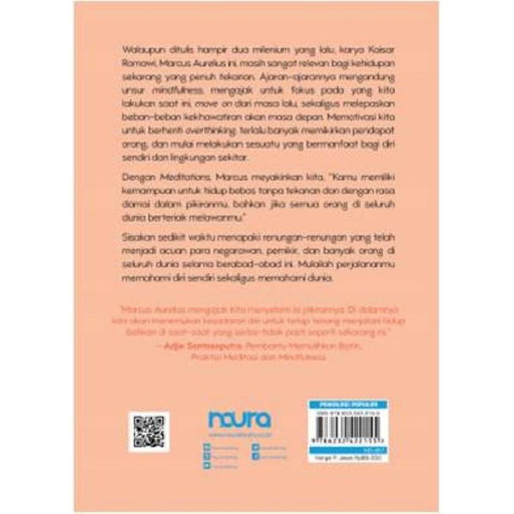 Walaupun ditulis hampir dua milenium yang lalu, karya Kaisar Romawi, Marcus Aurelius ini, masih sangat relevan bagi kehidupan sekarang yang penuh tekanan. Ajaran-ajarannya mengandung unsur mindfulness, mengajak untuk fokus pada yang kita lakukan saat ini, move on dari masa lalu, sekaligus melepaskan beban-beban kekhawatiran akan masa depan. Memotivasi kita untuk berhenti overthinking, terlalu banyak memikirkan pendapat orang, dan mulai melakukan sesuatu yang bermanfaat bagi diri sendiri dan lingkungan sekitar.