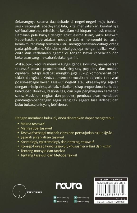 Maka, buku kecil ini memiliki fungsi ganda. Pertama, memaparkan tasawuf secara proporsional, ringkas, populer, dan mudah dipahami, tetapi sedapat mungkin juga cukup komprehensif dan tidak dangkal. Kedua, mempromosikan sejenis tasawuf positif–sebagai lawan tasawuf negatif atau eksesif–yang sejalan dengan prinsip cinta, akhlak, kebaikan, sikap proporsional terhadap kehidupan duniawi, rasionalitas, dan juga penghargaan terhadap sains. Meskipun ringkas dan populer, pembaca akan mendapati pandangan-pandangan segar yang tak segera bisa didapat dari buku-buku sejenis yang lebih berat.