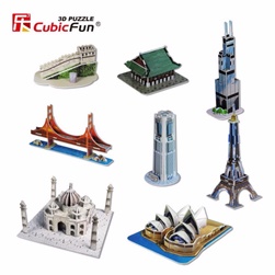 Puzzle 3D berbentuk bangunan bersejarah/terkenal ini sangat cocok untuk anak anda yang sangat menyukai miniatur bangunan. CubicFun membuat banyak puzzle 3D miniatur bangunan bersejarah/terkenal di dunia.