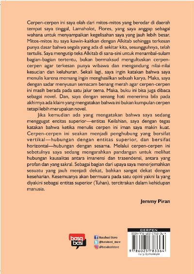 Cerpen-cerpen ini saya olah dari mitos-mitos yang beredar di daerah tempat saya tinggal, Lamaholot, Flores, yang saya anggap sebagai wahana untuk menyampaikan kegelisahan saya yang jauh lebih besar. Mitos-mitos itu saya kawin-kaitkan dengan Alkitab sehingga terkesan punya dasar bahwa segala yang ada di sekitar kita, sesungguhnya, telah tertulis. Saya mengutip teks Alkitab di sana-sini untuk menambal-sulam bagian-bagian tertentu, bukan bermaksud mengultuskan cerpen-cerpen agar terkesan punya wibawa dan mengandung nilai-nilai kesucian dan keluhuran. Sekali lagi, saya ingin katakan bahwa saya menulis karena memang ingin menghasilkan sebuah karya. Maka, saya dengan sadar menyusun semacam benang merah agar cerpen-cerpen ini masih berada pada satu jalur tema. Maka, buku ini bisa juga dibaca sebagai novel. Dan, saya dengan senang hati menerima bila pada akhirnya ada klaim yang mengatakan bahwa ini bukan kumpulan cerpen tetapi lebih merupakan novel.