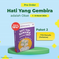 “Buku ini seperti oasis di tengah gurun ketidakbahagiaan yang ada saat ini. Cocok untuk orang-orang yang mudah overthinking (kita semua), kesepian, atau tidak pernah merasa cukup. Ditulis dengan bahasa yang santai, seperti mengobrol dengan teman lama di tengah foodcourt mal yang ramai. Baca dengan hati yang gembira!”