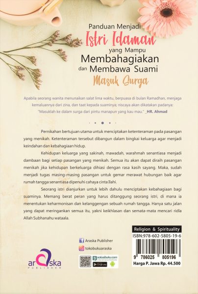 Buku kecil ini dimaksudkan untuk menjadi panduan bagi muslimah yang mau menikah maupun yang sudah menikah agar dapat menjalankan peran istri yang sesungguhnya sehingga mendapat ridla Allah Subhanahu wataala. Selain itu, disajikan kisah-kisah para istri Rasulullah saw. agar menjadi teladan bagi kita semua. Pun, disajikan pula doa-doa terbaik seorang istri untuk kesuksesan suaminya.