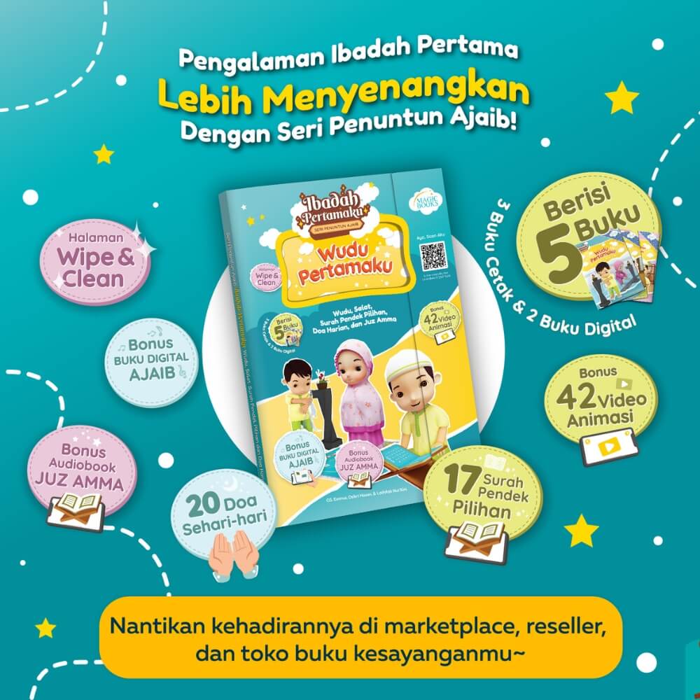 Buku Seri Penuntun Ajaib: Wudu Pertamaku dapat membantu si kecil untuk mempelajari cara berwudu sesuai ajaran agama Islam secara bertahap.