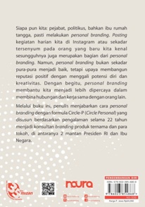 Melalui buku ini, penulis menjabarkan caranya dengan formula Circle-P yang dirumuskannya berdasarkan pengalaman 21 tahun menjadi konsultan branding produk ternama dan para tokoh, termasuk di antaranya Mantan Presiden RI dan Ibu Negara. Dengan menerapkannya, Anda tak hanya memetik manfaatnya bagi diri sendiri, tetapi juga bagi orang-orang di sekitar Anda.