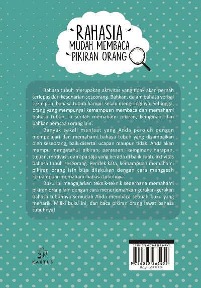 Buku ini mengajarkan teknik-teknik sederhana memahami pikiran orang lain dengan cara menerjemahkan gerakan-gerakan bahasa tubuhnya semudah Anda membaca sebuah buku yang menarik. Miliki buku ini, dan baca pikiran orang lewat bahasa tubuhnya!