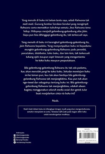 Bila gelembung-gelembung Rahwana itu tak ada padamu, kau akan menolak pergi ke toko buku. Sekadar meminjam buku ini ke teman pun, kau tak akan berdaya bila gelembung-gelembung Rahwana tak menjangkitimu. Kau pun tak akan nge-tweet dan sebagainya tentang buku ini. Bila gelembung-gelembung Rahwana tak menjangkitimu, adakah alasan bagimu menggunakan seluruh media sosial dan getok tular buat menjalarkan cinta via buku ini?