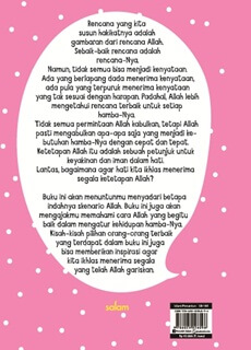 Rencana yang kita susun hakikatnya adalah gambaran dari rencana Allah. Sebaik-baik rencana adalah rencana-Nya. Namun, tidak semua bisa menjadi kenyataan. Ada yang berlapang dada menerima kenyataan, ada pula yang terpuruk menerima kenyataan yang tak sesuai dengan harapan. Padahal, Allah lebih mengetahui rencana terbaik untuk setiap hamba-Nya. Tidak semua permintaan Allah kabulkan, tetapi Allah pasti mengabulkan apa-apa saja yang menjadi kebutuhan hamba-Nya dengan cepat dan tepat. Ketetapan Allah itu adalah sebuah petunjuk untuk keyakinan dan iman dalam hati. Lantas, bagaimana agar hati kita ikhlas menerima segala ketetapan Allah? Buku ini akan menuntunmu menyadari betapa indahnya skenario Allah. Buku ini juga akan mengajakmu memahami cara Allah yang begitu baik dalam mengatur kehidupan hamba-Nya. Kisah-kisah pilihan orang-orang terbaik yang terdapat dalam buku ini juga bisa memberikan inspirasi agar kita ikhlas menerima segala yang telah Allah gariskan.