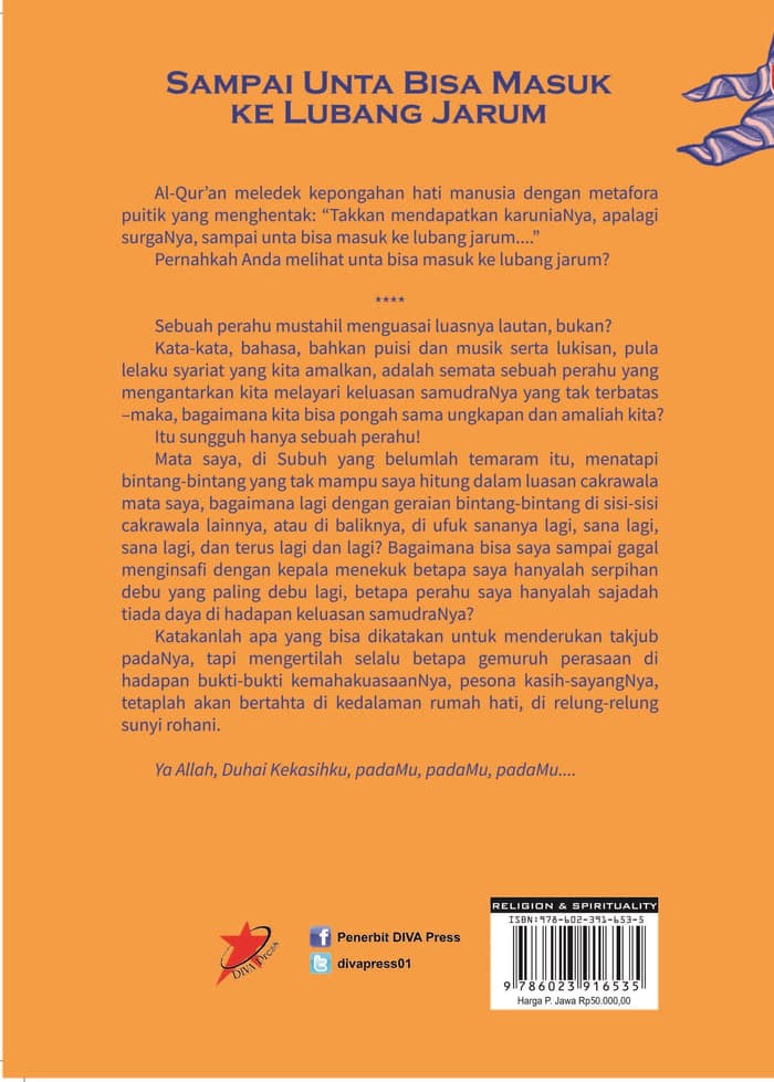 Al-Qur’an meledek kepongahan hati manusia dengan metafora puitik yang menghentak: “Takkan mendapatkan karuniaNya, apalagi surgaNya, sampai unta bisa masuk ke lubang jarum....”