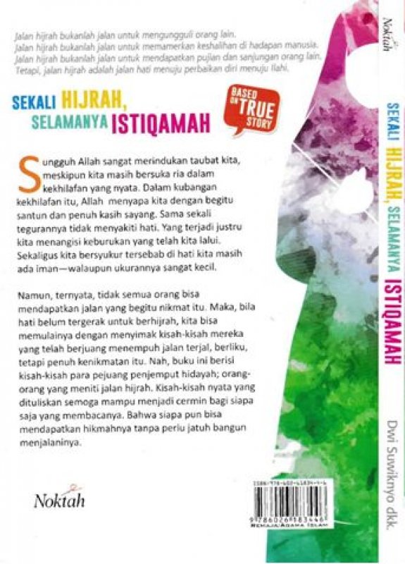 Namun, ternyata, tidak semua orang bisa mendapatkan jalan yang begitu nikmat itu. Maka, bila hati belum tergerak untuk berhijrah, kita bisa memulainya dengan menyimak kisah-kisah mereka yang telah berjuang menempuh jalan terjal, berliku, tetapi penuh kenikmatan itu. Nah, buku ini berisi kisah-kisah para pejuang penjemput hidayah; orang-orang yang meniti jalan hijrah. Kisah-kisah nyata yang dituliskan semoga mampu menjadi cermin bagi siapa saja yang membacanya. Bahwa siapa pun bisa mendapatkan hikmahnya tanpa perlu jatuh bangun menjalaninya.
