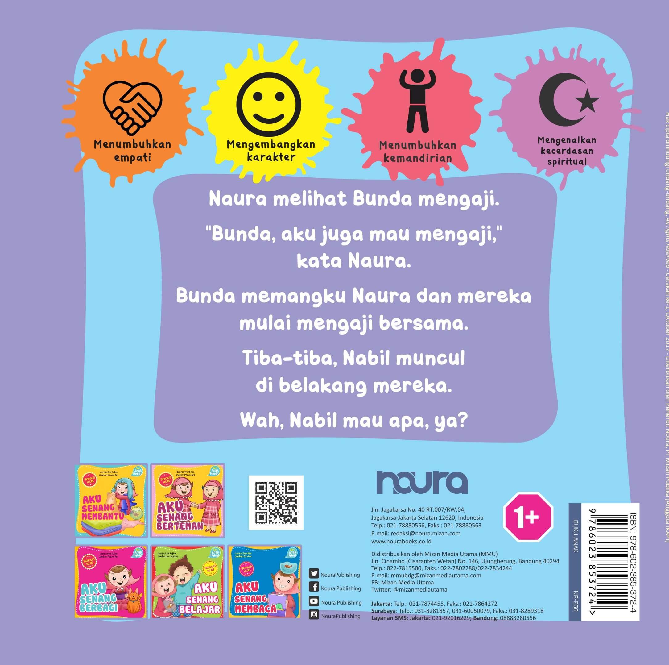 Naura melihat Bunda mengaji. "Bunda, aku juga mau mengaji," kata Naura. Bunda memangku Naura dan mereka mulai mengaji bersama. Tiba-tiba, Nabil muncul di belakang mereka. Wah, Nabil mau apa, ya?