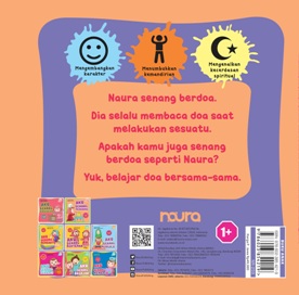 Naura senang berdoa. Setiap ingin melakukan sesuatu, Naura selalu membaca doa. Hafalan doa-doa Naura sudah banyak. Tentu kamu juga ingin mengafalnya, kan? Yuk, kita menghafal doa bersama-sama. Sebelum mulai belajar, Naura juga berdoa, ^Robbii zidnii 'ilman warzuqnii fahman waj-'alnii minashoolihiin.^ Saat … saat apa lagi, ya, Naura senang berdoa?