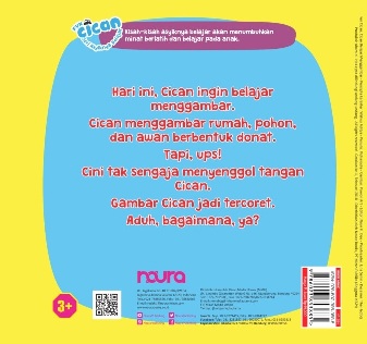 Hari ini, Cican ingin belajar menggambar. Cican menggambar rumah, pohon, dan awan berbentuk donat. Tapi, ups! Cini tak sengaja menyenggol tangan Cican. Gambar Cican jadi tercoret. Aduh, bagaimana, ya?