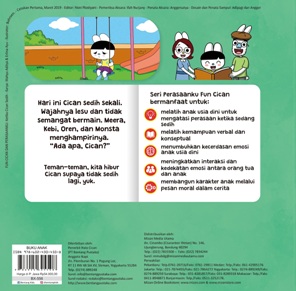 Hari ini Cican sedih sekali. Wajahnya lesu dan tidak semangat bermain. Meera, Kebi, Oren, dan Monsta menghampirinya. “Ada apa, Cican?”