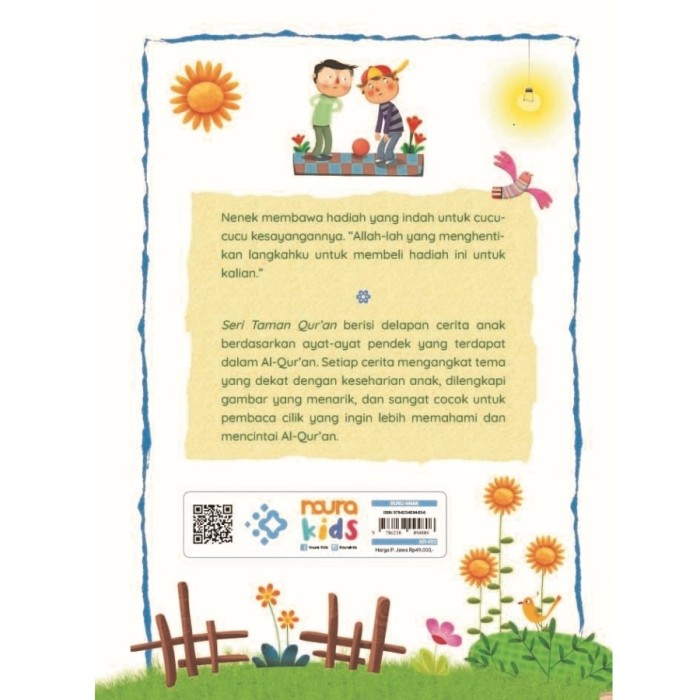 Seri Taman Quran berisi delapan cerita anak berdasarkan ayat-ayat pendek yang terdapat dalam Al-Quran. Setiap cerita mengangkat tema yang dekat dengan keseharian anak, dilengkapi gambar yang menarik, dan sangat cocok untuk pembaca cilik yang ingin lebih memahami dan mencintai Al-Quran.