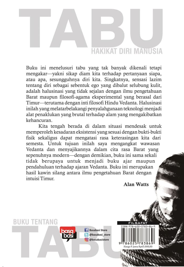 Buku ini menelusuri tabu yang tak banyak dikenali tetapi mengakar—yakni sikap diam kita terhadap pertanyaan siapa, atau apa, sesungguhnya diri kita. Singkatnya, sensasi lazim tentang diri sebagai sebentuk ego yang dibalut selubung kulit, adalah halusinasi yang tidak sejalan dengan ilmu pengetahuan Barat maupun filosofi-agama eksperimental yang berasal dari Timur—terutama dengan inti filosofi Hindu Vedanta. Halusinasi inilah yang melatarbelakangi penyalahgunaan teknologi menjadi alat penaklukan yang brutal terhadap alam yang mengakibatkan kehancuran.