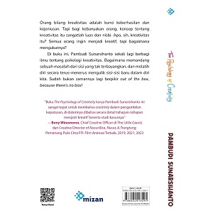 “Buku The Psychology of Creativity karya Pambudi Sunarsihanto ini, sangat tepat untuk membahas creativity dalam pengambilan keputusan, di dalamnya dibahas secara detail tahapan-tahapan menjadi ‘kreatif’ beserta studi kasusnya.”