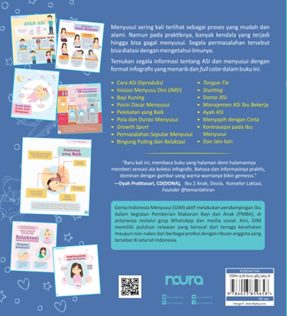 “Banyak buku seputar ASI dan menyusui yang beredar. Tapi tidak banyak yang mampu menyajikan informasi secara padat, berbasis bukti ilmiah (evidence-based), dengan infografis menarik dan tata letak yang tepat untuk dicerna otak, seperti buku ini. Panduan yang memudahkan ayah dan ibu untuk dibaca setiap kali mendapatkan pertanyaan dan kebingungan seputar menyusui.”